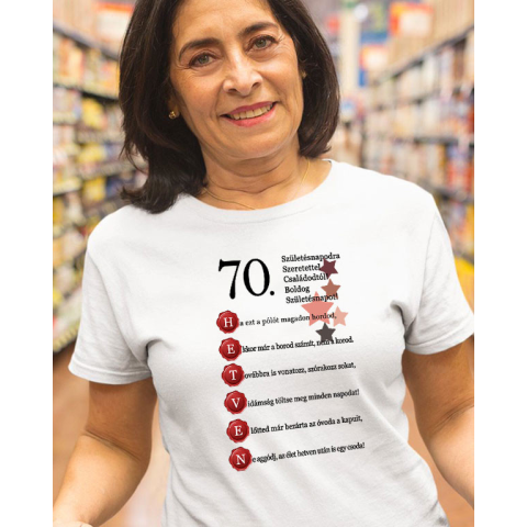 1 kép Ajándék szülinapra - 70. szülinapos női póló
