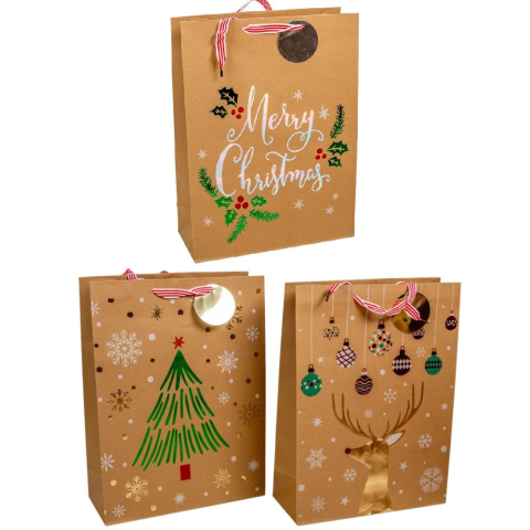 Ajándék tasak kari mintával kraft 40x30cm