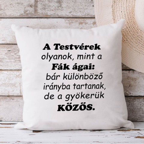 Ajándék testvérnek, párna testvéreknek. A testvérek olyanok mint a fák ágai: bár különböző irányba tartanak, de a gyökerük közös. Születésnapra, névnapra lepd meg lány vagy fiú testvéredet egy szuper feliratos párnával. A párna mérete 40x40 cm, a huz