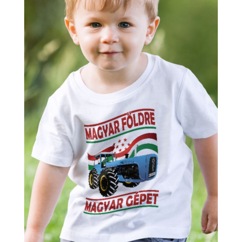 Traktoros gyerek póló, magyar földre Dutra. Magyar földre, magyar gépet gyerek póló mezőgazdászoknak, traktorosoknak születésnapra, névnapra. Választható színű és méretű 100% pamut póló. Minőségi gyerek pólóink ideálisak mindennapi viselethez és ajánd