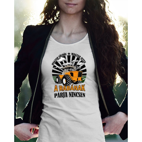 Ajándék traktorosoknak, Rába női póló. Magyar földön, magyar isten a Rábának párja nincsen. Meglepetés Rába rajongó vagy tulajdonos anyukáknak, barátnőknek. Tartós nyomat, 100% pamut póló választható színben. Kiváló minőségű férfi és női pólók, amelye