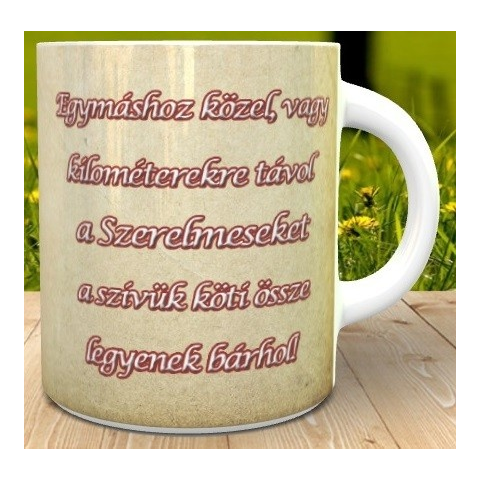 Szerelmes bögre, kilométerekre távol. Egy megható és kedves ajándék szerelmednek Valentin napra, évfordulóra, akitől sokszor több kilométer is elválaszt. Egymáshoz közel vagy kilométerekre távol a szerelmeseket a szívük köti össze legyenek bárhol. Kerámia