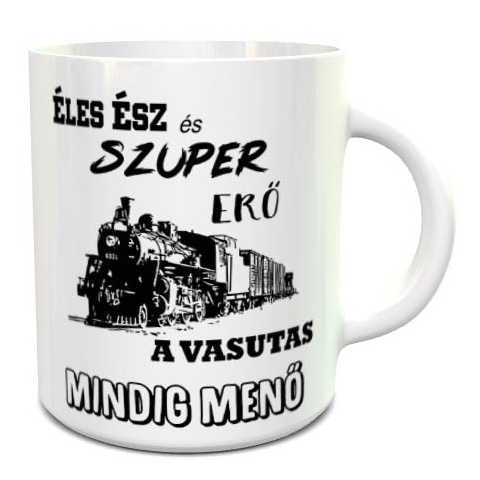 Ajándék vasutasnak, éles ész és szuper erő vasutas bögre. Vicces bögre vasutasnak, mozdonyvezetőknek. Egyetlen vasutas konyhájából sem hiányozhat egy ilyen menő bögre. Többféle méretben, színben rendelheted és még a minta színét is kiválaszthatod. Egye