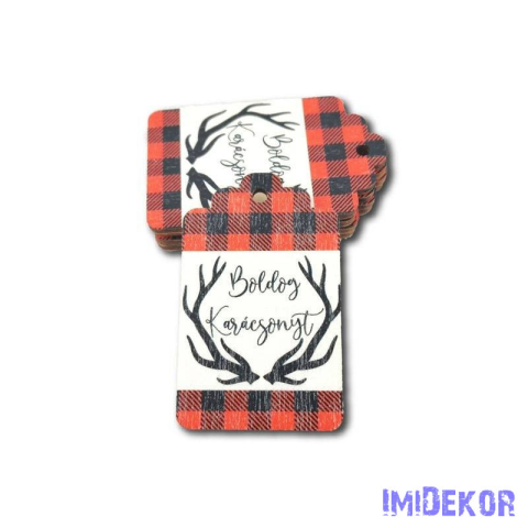 1 kép Ajándékcímke 5db/csomag 6,5x4cm - Piros-Fekete Szarvasagancs