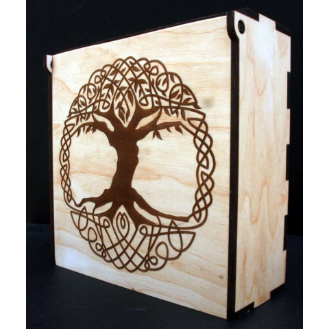 Az Ajándékdoboz fa mintával kiváló ajándék lehet barátoknak, családtagoknak vagy kollégáknak. A fa rétegelt nyír lemezből készült doboz mérete 9x21x21 cm és vastagsága 6 mm. A doboz tetején életfa minta található, mely különlegess