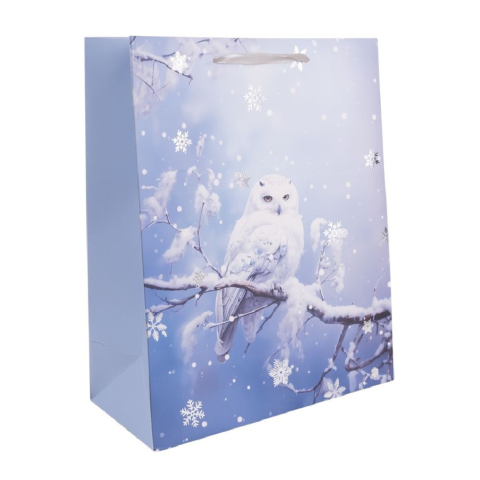Ajándéktasak hóbagoly 18x23cm dekorációs kellék árgrafikon