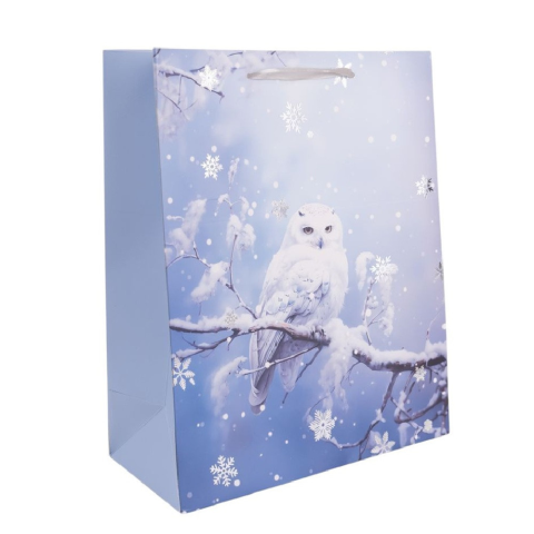 Ajándéktasak hóbagoly 26x32cm dekorációs kellék árgrafikon