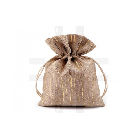 Ajándéktasak juta imitáció arany mintás - 13x18 cm