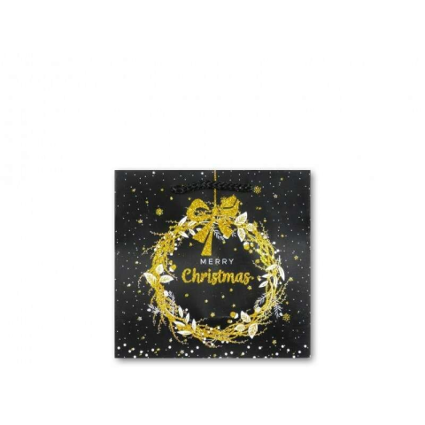 1 kép Ajándéktasak karácsonyi koszorú fekete/arany glitteres