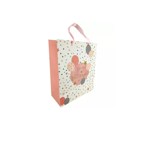 1 kép Ajándéktasak - kicsi (boldog szülinapot, fehér - rózsaszín kör és lufik)