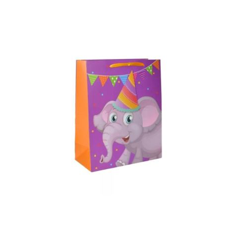 1 kép Ajándéktasak - kicsi (lila, elefánt party sapkában)