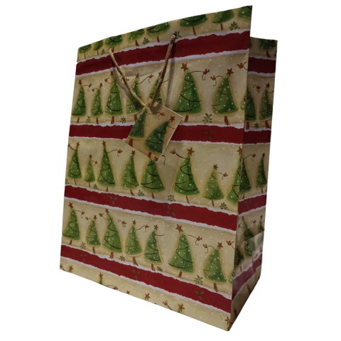 Karácsonyi ajándéktasakok közepes méretben, vegyes mintával. Mérete: 32,5 x 26,5 x 14 cm.