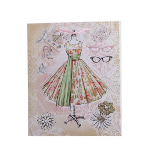 1 kép Ajándéktasak - közepes (ruha állványon, zöld kendővel)