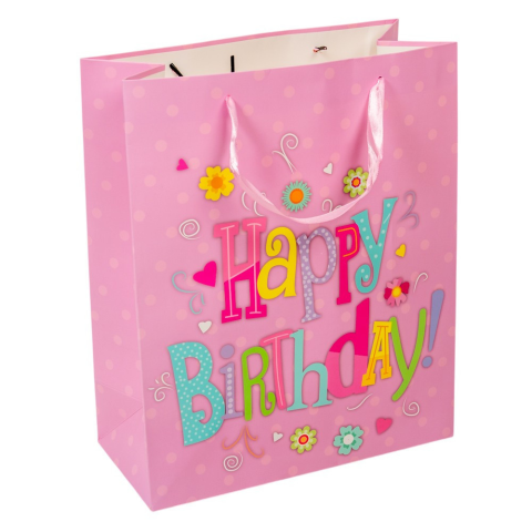 1 kép Ajándéktasak lila Happy Birthday 26x32cm