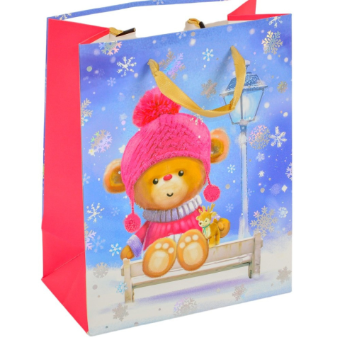 1 kép Ajándéktasak Maci padon rózsaszín 18x23cm