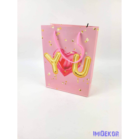 Ajándéktáska 24x18x9 cm - Rózsaszín szív mintás 5 A