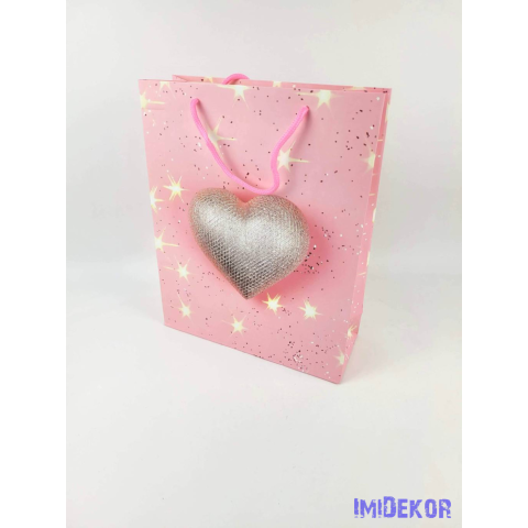 Ajándéktáska 32x25,5x10 cm - Rózsaszín szív mintás 6 A