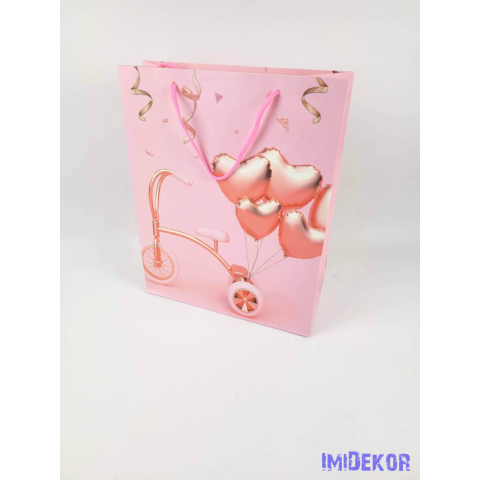 Ajándéktáska 32x25,5x10 cm - Rózsaszín szív mintás 6 C dekorációs kellék 1 kép