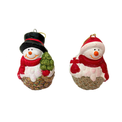 AKASZTHATÓ HÓEMBERES KERÁMIA DÍSZ, 2 FÉLE karácsonyfadísz árgrafikon