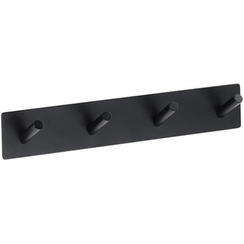 Akasztó 4 kampóval. Ennek a Bemeta fürdőszobai kiegészítőnek a szélessége 25,5 cm, és rozsdamentes acélból készült.