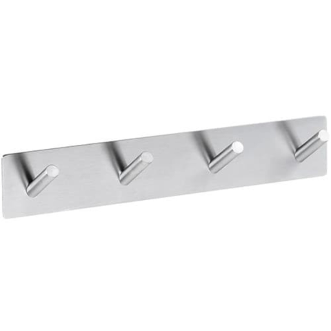 Akasztó 4 kampóval. Ennek a Bemeta fürdőszobai tartozéknak a szélessége 25,5 cm, és rozsdamentes acél anyagból készült.