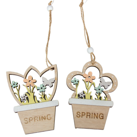 Akasztós áttört virágcserépmintás fa dísz 11cm