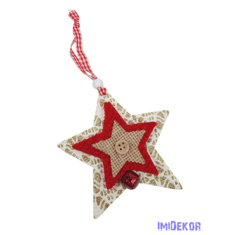 Akasztós filccsillag kötött középpel -Fehér dekorációs kellék 1 kép