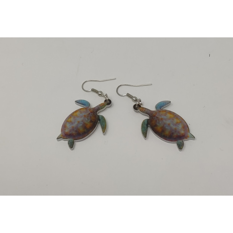 1 kép Akasztós fülbevaló | Színes vízi teknős mintával - 1pár