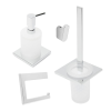Praktikus fürdőszobai kiegészítők SAT készlet, amely a következőkből áll horog (SATDBEVOR1), szappanadagoló (SATDEVOR99), WC papír tartó (SATDEVOR26), WC kefe (SATDEVOR37)