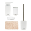 Praktikus fürdőszobai kiegészítők SAT készlet, amely a következőkből áll szappanadagoló (SATDBINFIBIPR3), kefetartó (SATDINFI27BI), szappantartó (SATDINFI39BI), WC kefe (SATDINFI37BI), fürdőszőnyeg (SATDPRED02BE)