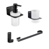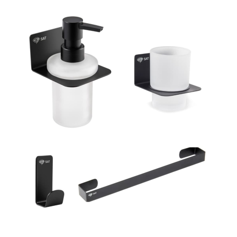 Praktikus fürdőszobai kiegészítők SAT készlet, amely a következőkből áll horog (SATDBMOOD2MC), szappanadagoló (SATDMOOD99MC), üvegtartó (SATDMOOD27MC), törölközőtartó (SATDMOOD23MC)