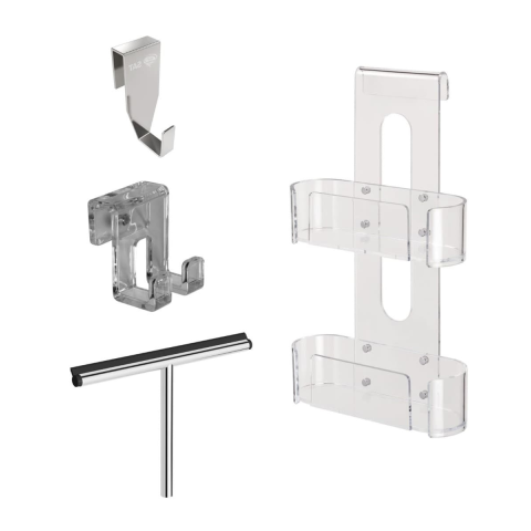 Praktikus fürdőszobai kiegészítők SAT készlet, amely a következőkből áll horog (SATDBWI2), horog (SATWIHACEKPLAST), üveggumi (SATDSTERKA), polc (SATPOLPLASTT)