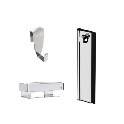 Praktikus fürdőszobai kiegészítők SAT készlet, amely a következőkből áll horog (SATDBWI4), üveggumi (SATDSTERKAHCH), polc (SATDPOL20CH)