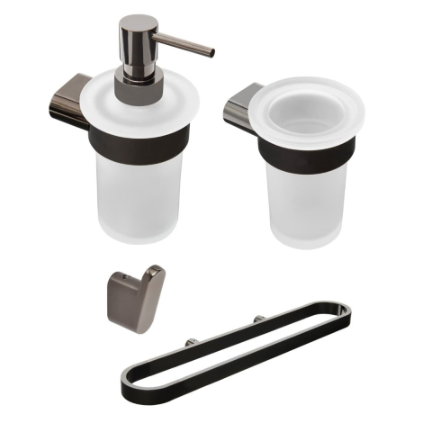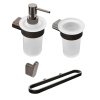 Praktikus fürdőszobai kiegészítők SAT készlet, amely a következőkből áll horog (SATDBSIMR2GM), szappanadagoló (SATDSIMR99GM), üvegtartó (SATDSIMR27GM), konzol (SATDSIMR04GM)