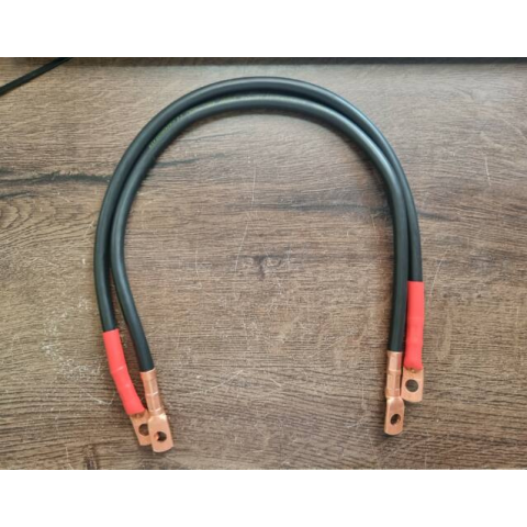 Akkumulátorokat szeretnél összekötni párhuzamosan vagy akár sorosan, nagyon fontos a keresztmetszet. Ennek az összekötő kábelnek a keresztmetszete 25mm2, hossza 50cm így bátran használhatod akkumulátorok összekapcsolására a kábelek végén a réz saru furata 8mm.