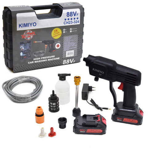 Akkumulátoros magasnyomású mosó, vezeték nélküli működés, 2 db 88V akkuval, 3 féle szórófejjel Ezzel a magasnyomású mosóval az autómosást vagy a kerti bútorok takarítását könnyedén elvégezheti! Vezeték nélkül, 88V rendszerű, 2 Ah-s akkumulátorral működik, több mint elegendő energiát termelve autó, csónak, lakókocsi, kerékpár, kerti bútor, hordó vagy kerti szerszámok mosásához. Ideális kisebb takarítási munkákhoz a ház közelében, kempingezés a