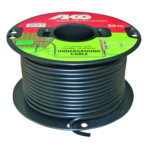 AKO Magasfeszültségű földkábel: Kiváló minőségű földkábel villanypásztorokhoz. Dupla szigetelés, hoganyzott rézhuzal. 50 méteres hossz. Kerítés- és földvezetékekhez egyaránt. Állattenyésztés, mezőgazdaság. AKO Magasfeszültségű Földkábel 2,5 mm Dupla S