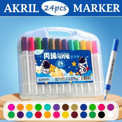 Akril festékfilctoll készlet hordozható tárolóban-24db filctoll, marker termékleírás