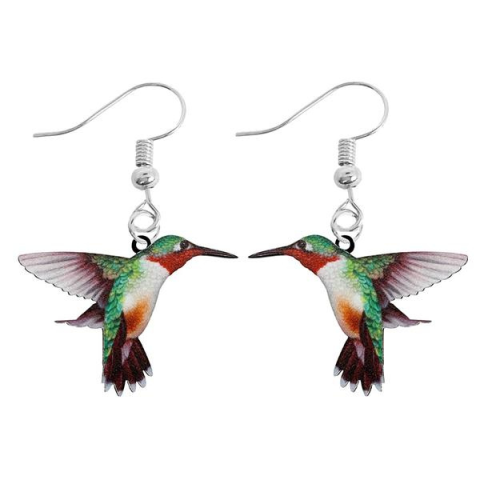 Kolibri fülbevaló élénk színekkel, könnyű akril anyagból. Egyedi, állatos ékszer, amely tökéletesen kiegészíti stílusodat. Rendeld meg most
