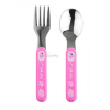 Gyermek evőeszközkészlet, amely ideális a baba biztonságos és kényelmes etetéséhez otthon és utazás közben egyaránt. Minden eleme biztonságos, kerek formájú, az érzékeny kisbabák igényeihez igazítva. A készlet kanalat és villát tartalmaz. 12 hónapos korú