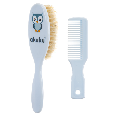 Az Akuku fésű szett tartalmaz egy természetes sörtéjű kefét és egy lekerekített fogakkal ellátott fésűt, melyek gyengédek és nem sértik fel kisbabád érzékeny, puha fejbőrét. Az Akuku egy népszerű, lengyel babatermék márka, amely praktikus és biztonságos