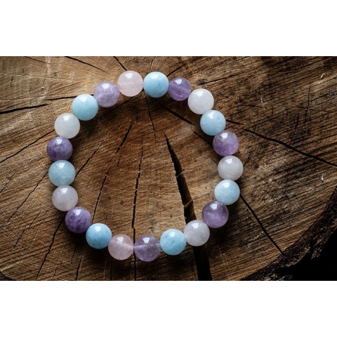 1 kép Akvamarin, rózsakvarc, ametiszt ásványkarkötő