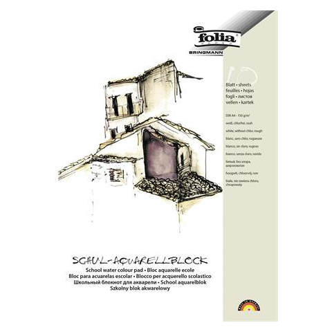 Akvarell tömb, A4, 150 g, 10 lap, durva, FOLIA -a minőség önmagáért beszél: durva felületének köszönhetően kiváló minőségű akvarelltömbjeink biztosítják a nedves festék jó tapadását, valamint a nedves korrekció lehetőségét. A papír textúrája a festék s
