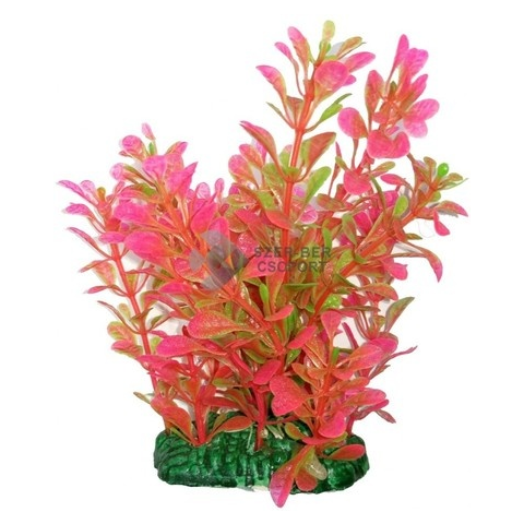 Akváriumi műnövény rózsaszín átmenetes, ovális levelekkel. Mutatós, természetes hatású dísz. A dekorációs szerepe mellett a díszhalaknak is rejtekhelyet nyújt, ami nagyban növeli a komfortérzetüket. Élő növényekkel együtt is behelyezhető, remekül kiegészíti a látványvilágot. Talpa nehezékként szolgál, stabilan az akvárium alján tartja a műnövényt. Magassága kb. 15cm.