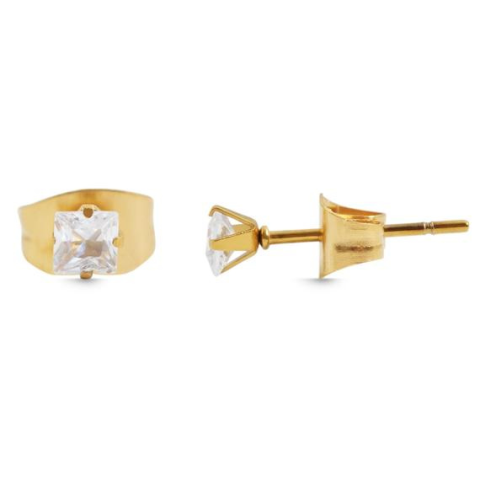 1 kép Akzent Ilana – Négyszögű rozsdamentes acél fülbevaló cirkóniával (aranyszínű)