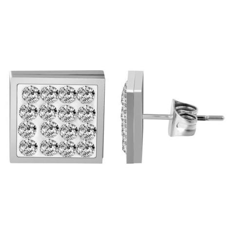 Modern, négyzet alakú, nemesacél fülbevaló 16 csillogó cirkónia kővel