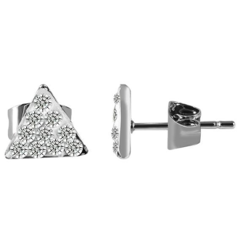 Modern háromszög alakú fülbevaló csillogó Simili kövekkel és elegáns acél felülettel