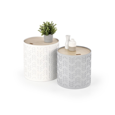 1 kép ALBA dohányzóasztal, 2-es szett, szín: természetes/fehér/szürke