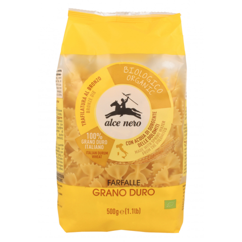 Az Alce Nero organikus durumbúza tésztát kizárólag szerves durumbúzából állítják elő, amelyet Olaszországban termesztenek. A speciális extrudálási eljárás durva felületet biztosít a tészta számára, ami különösen alkalmas a mártások áztatására. Az Alce
