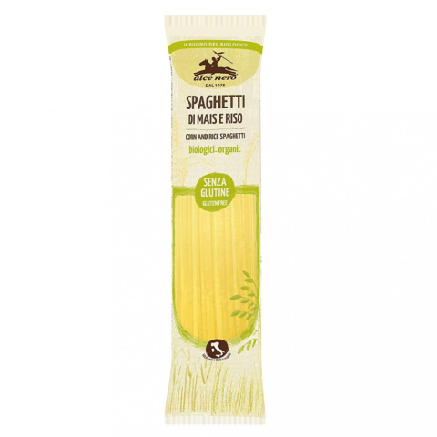 Az Alce Nero gluténmentes spagetti kizárólag Olaszországban termesztett kukoricával és rizzsel készül. A recept célja a fehér és a sárga, a kukorica és a rizs ízének megfelelő egyensúlyba hozása. A spagetti készítésével kapcsolatos szakértelem olyan í